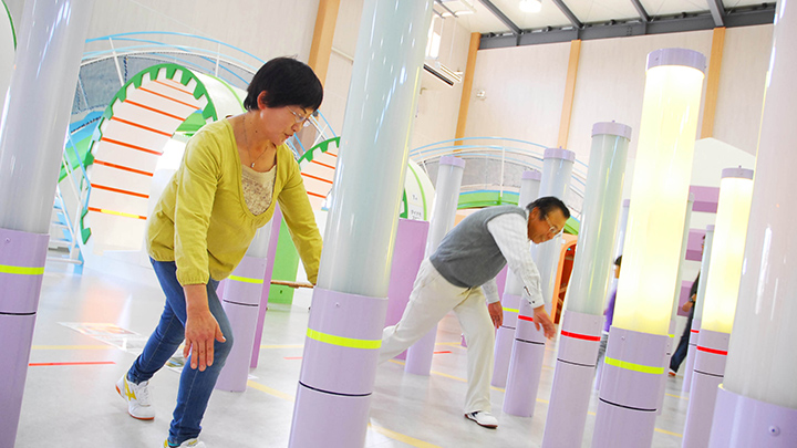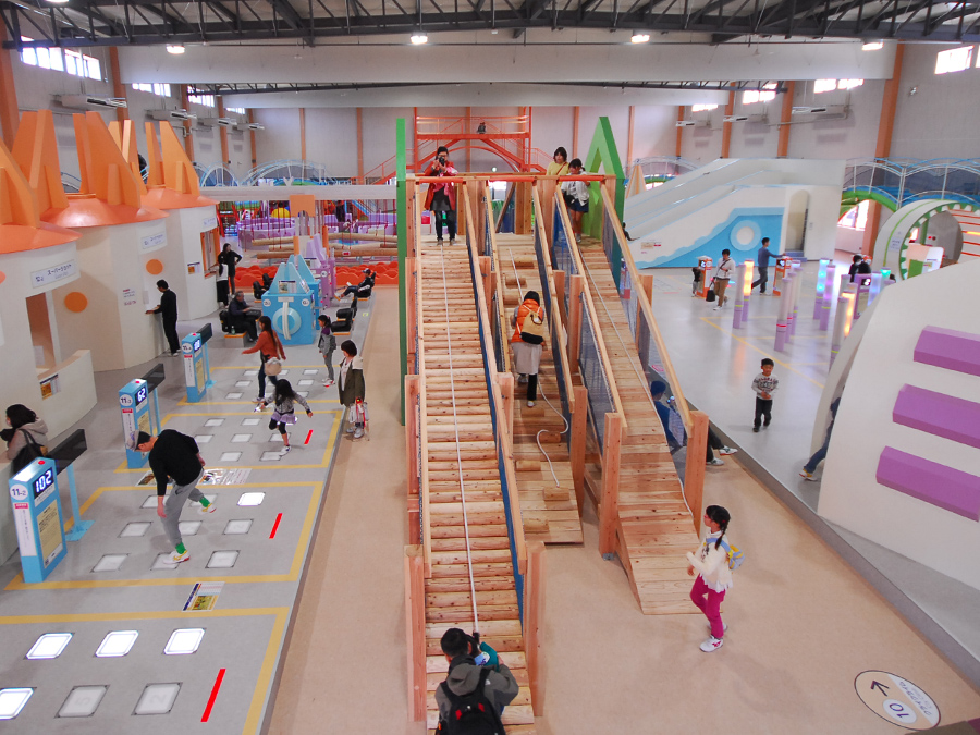 15種類もの運動アトラクションには、健康づくりのための運動指針としてメッツ(身体活動の強さと量)の表示を行い、 生活習慣病予防のための指標としてその運動量を体感していただけます。