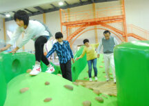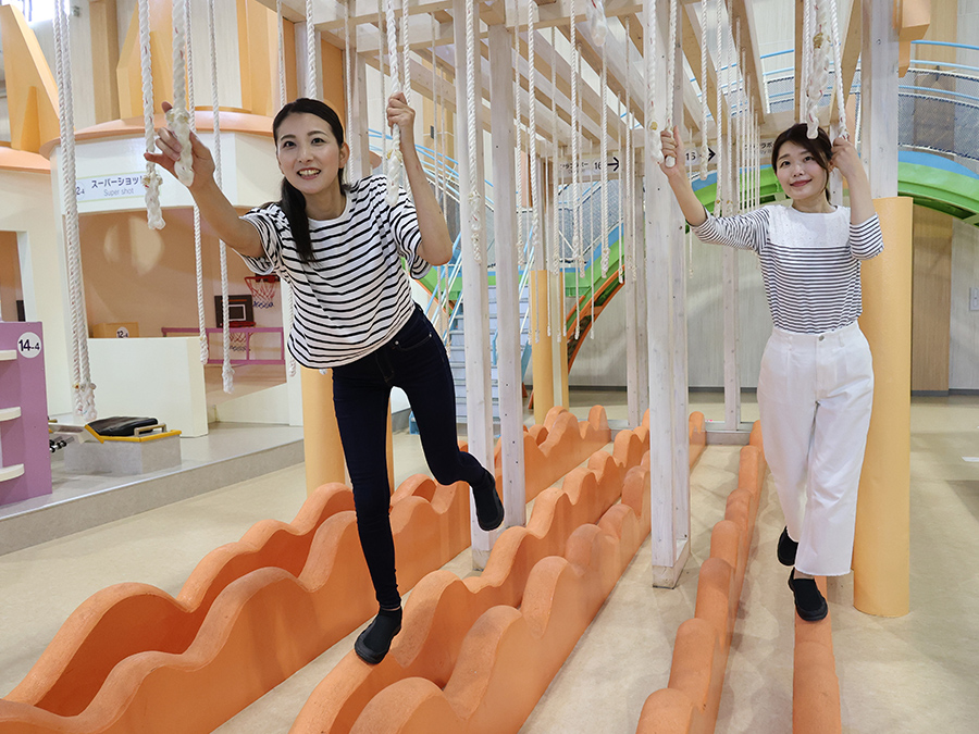 登って、下りて、デコボコ道に、丸太の道をゆっくり進もう。