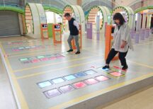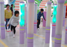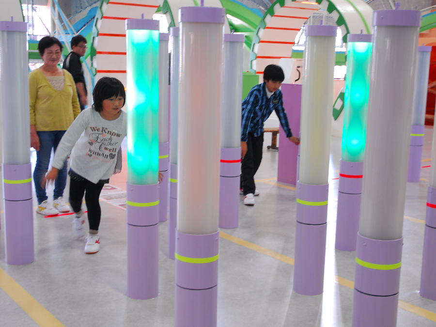 7色に点灯する光を覚えて、柱をしっかりタッチ。