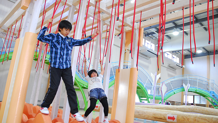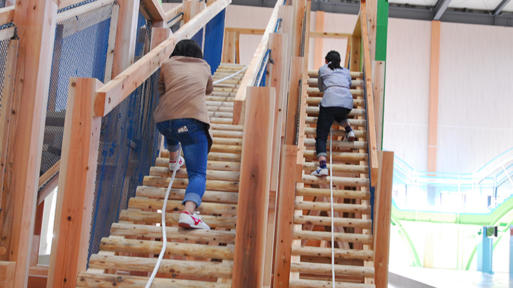 ロープを伝って、冒険家気分で傾斜を登ってみよう。