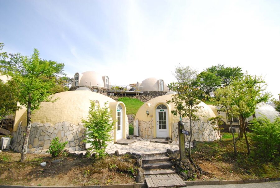 雄大な阿蘇の自然の地形をそのまま活かした森の中のドーム型ホテル