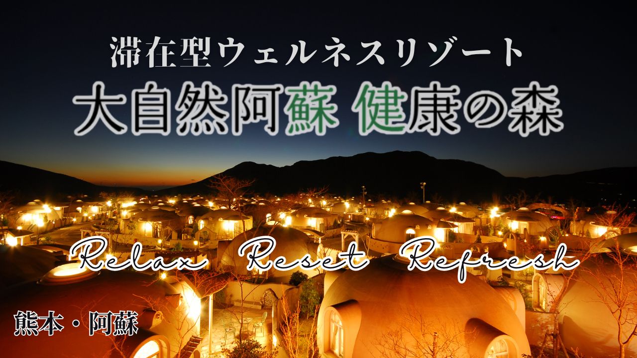 熊本県阿蘇郡南阿蘇村に広がる「大自然阿蘇 健康の森」は、阿蘇ファームランドの宿泊エリアに位置する滞在型ウェルネスリゾートです。今回公開されたイメージビデオでは、「心とカラダに休養を」というテーマのもと、阿蘇の壮大な自然の中で“リラックス・リセット・リフレッシュ”を体感できる特別な時間が描かれています。