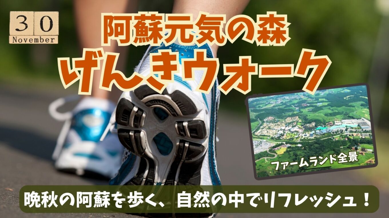 阿蘇ファームランド内の日帰りエリア「阿蘇元気の森」で、好評を博したイベント「げんきウォーク」の第2弾が開催されます。前回10月の開催に続き、今回は2025年11月30日(日)に実施。初級者向けの健康イベントとして、運動のきっかけづくりや心身のリフレッシュにぴったりの内容です。「げんきウォーク」は、“健康と運動”をテーマにした新たな取り組み。約2キロのコースをゆっくり歩きながら、阿蘇の雄大な自然や澄んだ空気を体いっぱいに感じることができます。スタートは宿泊フロント前からで、元気の森エリアを周回するコースとなっています。