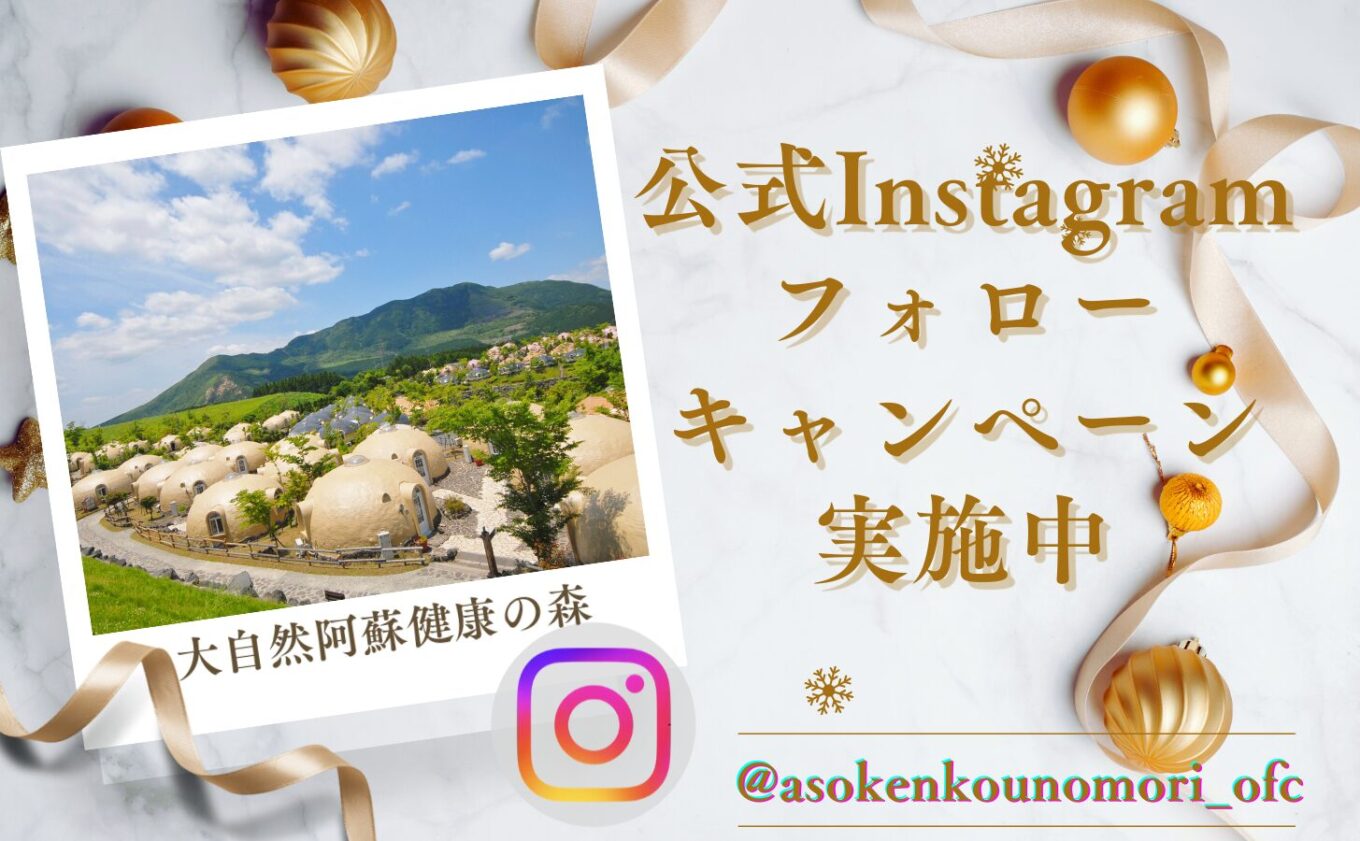 阿蘇の雄大な自然に囲まれた宿泊エリア「大自然阿蘇健康の森」では、ただいまご宿泊のお客様限定で“Instagramフォローキャンペーン”を実施中です。公式Instagramをフォローし、その画面をフロントでご提示いただくだけで、心ばかりの“ちょっぴりプレゼント”をお渡しいたします♪