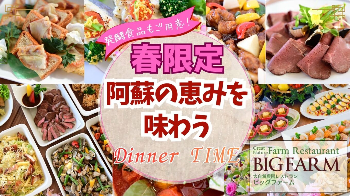 提供期間:2026年3月1日(日)~5月31日(日)予定場所:阿蘇ファームランド 宿泊者専用「レストランビッグファーム」対象:「大自然阿蘇健康の森」ご宿泊のお客様提供時間:夕食 17:30~21:00(L.O.20:30)