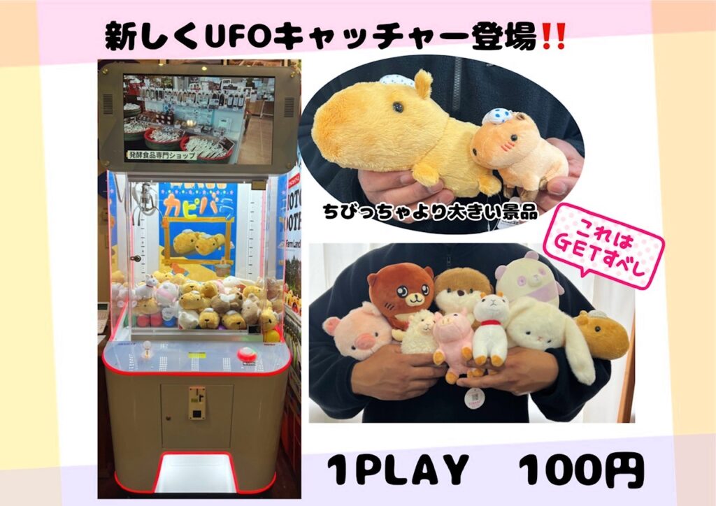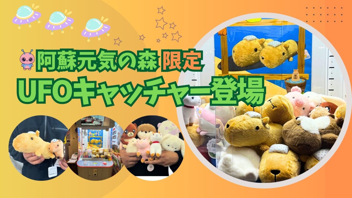 阿蘇ファームランドの敷地内、日帰りで楽しめる「阿蘇元気の森 ミルクファーム」に、オリジナルのUFOキャッチャーDEKACHAが登場しました。家族みんなでワクワクできる新スポットとして、さっそく注目を集めています。