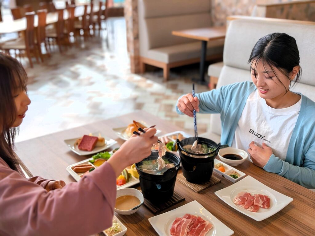 阿蘇ファームランドの宿泊エリア「大自然阿蘇健康の森」にある宿泊者専用レストラン「ビッグファーム」では、2026年4月1日~4月27日までの期間限定で、朝食メニューに「ひとり占め 農園野菜の健康しゃぶしゃぶ」が登場します。宿泊者の皆さまが、阿蘇の朝の澄んだ空気とともに体にやさしい食事を楽しめるように考えられた、健康志向の特別メニューです。しかもこのしゃぶしゃぶは追加料金不要。宿泊料金に含まれているため、気軽に体験できるのも嬉しいポイントです。