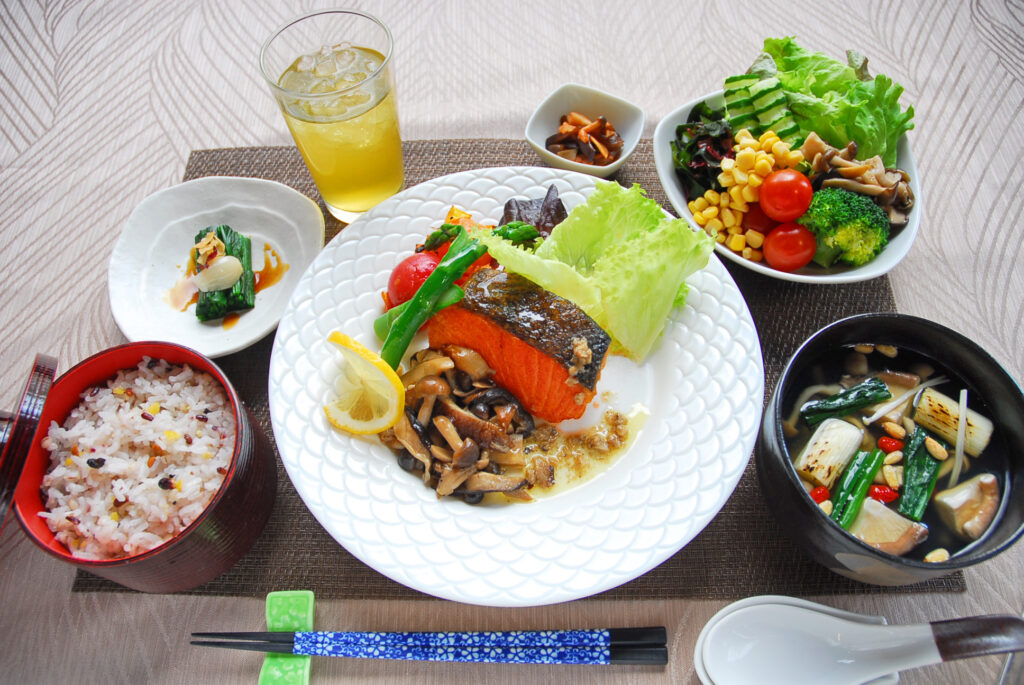 健康的な食事を実践する中で、お野菜の大切さがあらためて見直されています。「薬膳旬菜 阿蘇きのこ亭」でお食事された方はサラダバー(食べ放題)を楽しむことができます。自社農園産のきのこやトマト、レタスを豊富にご用意。食事の最初に野菜を摂ることで血糖値の急上昇をおだやかにする「ベジタブルファースト」を実践することができます。
