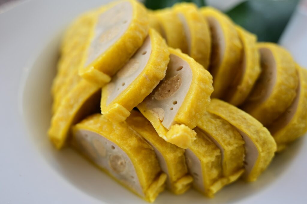 今回の目玉は、熊本の郷土料理を集めた特設コーナー。普段なかなか一度に味わえない名物が並び、旅気分をぐっと盛り上げてくれます。まず注目したいのが「からし蓮根」。レンコンの穴にからし味噌を詰めて揚げた料理で、ツンと鼻に抜ける辛さが特徴です。シャキシャキとした食感とのバランスが絶妙で、一度食べるとクセになる味わいです。