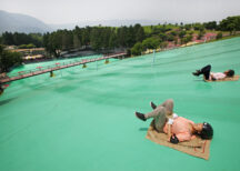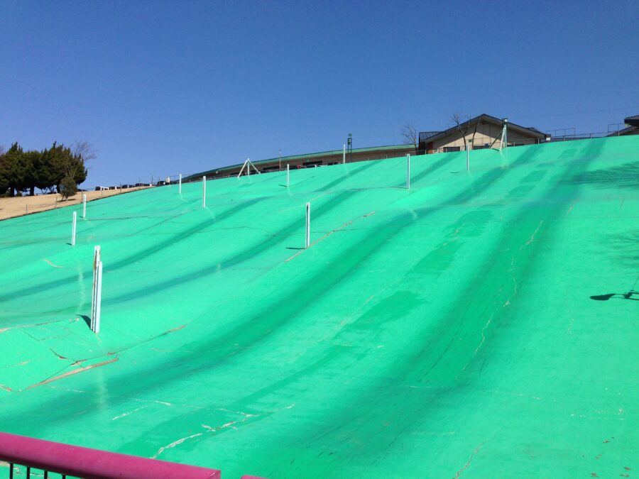 キングスライダーは麻袋で斜面を滑走する巨大な滑り台です