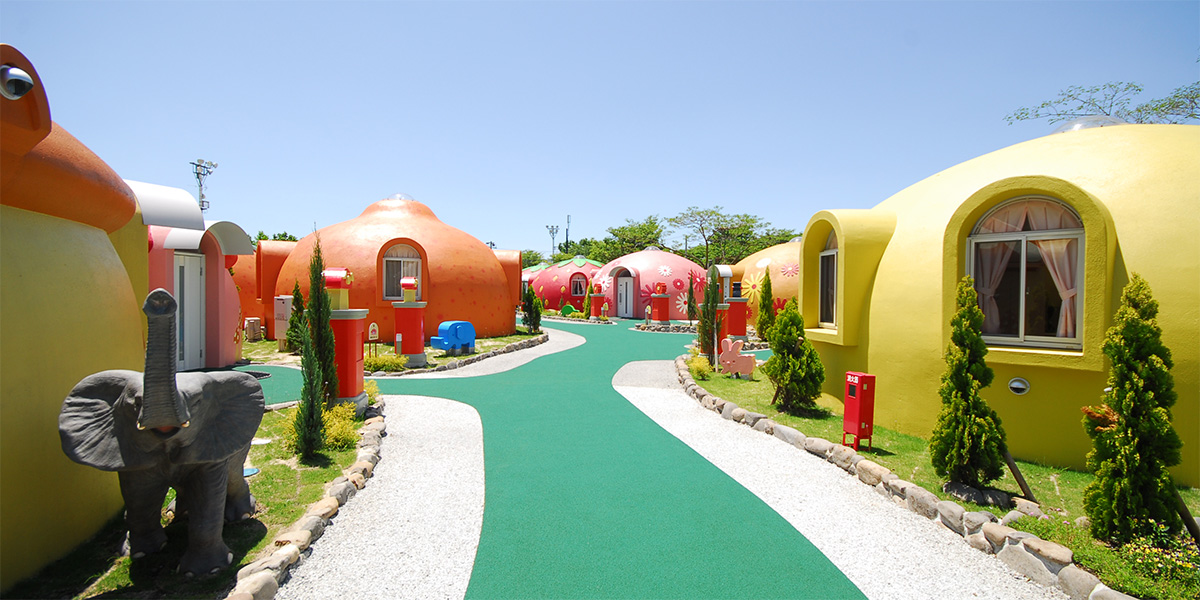 きょうりゅう、サッカーボール、木の上の家まで!それぞれキャラクターがデザインされたドーム型の客室が全26室。「こんなところに住んでみたい!」そんなお子様の夢を叶えられるゾーンです。ドリームゾーンは専用の宿泊プランがございます。