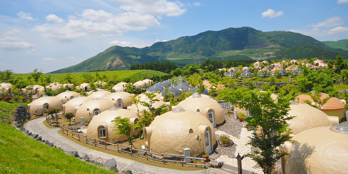 大自然阿蘇健康の森は、生涯に渡る健康ライフの為に健康の専門家が開発した、大自然の中のウェルネス・リゾートです。「離れ」タイプのドーム型客室で阿蘇の四季を感じつつ、健康的な「食事」「癒し」「運動」により、健康習慣を体感いただけます。
