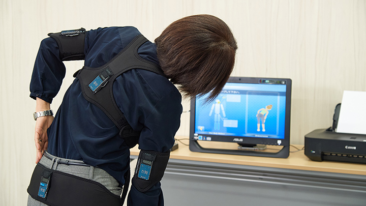 3Dセンサに向かって歩くだけで、「歩行速度」「歩幅」「胸腰部の上下動」「足の上がり角度」等の36項目を数値で表示。身体全体の歩行姿勢を年齢と性別に応じた基準で点数化します。