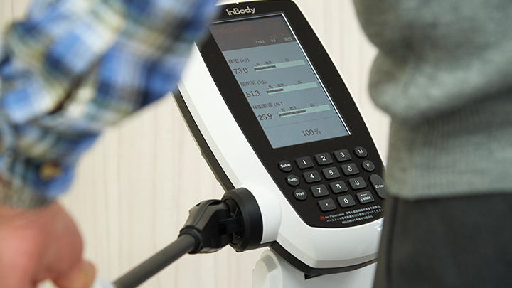 体重や内臓脂肪だけでなく、体を構成する水分・タンパク質・ミネラル・体脂肪を定量的に分析し、人体成分の過不足を評価します。
