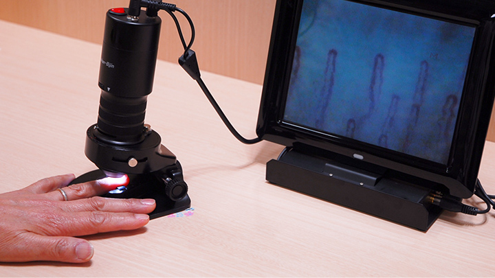 採血不要で体内を流れる血液をリアルタイムに観察します。 毛細血管像の形状や組織液の汚れの状態を観察する事により、生活習慣、栄養状態・運動過不足など、健康状態が分かります。