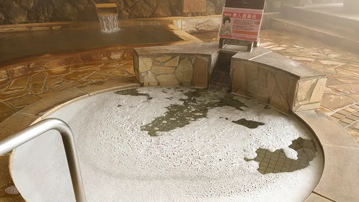 大浴場につながる浴場。ややぬるめの、浅めの浴槽なので、半身浴にご利用頂けます。