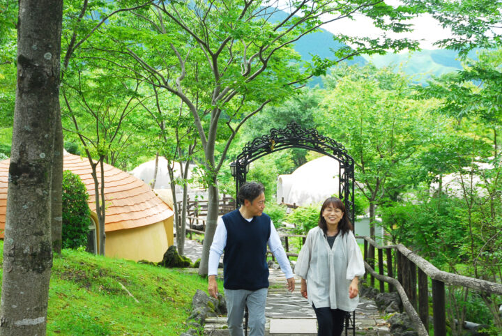 全室が「離れ」タイプのドーム型客室で、阿蘇の四季を感じつつ健康的な「食事」「癒し」「運動」により健康習慣の向上を体感いただけます。日常から離れた場所に身を置いて、ゆったりとした気持ちで、ご夫婦で健康と向き合ってみませんか?