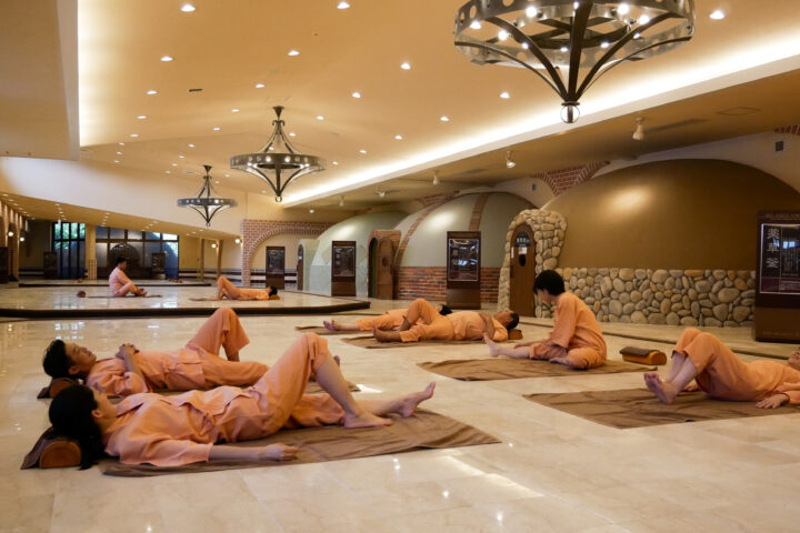 モロッコの宮殿をイメージした館内には、薬草や岩塩などの自然素材で埋め尽くされた13種類の温熱窯が並びます。