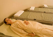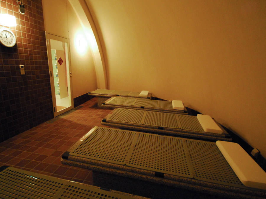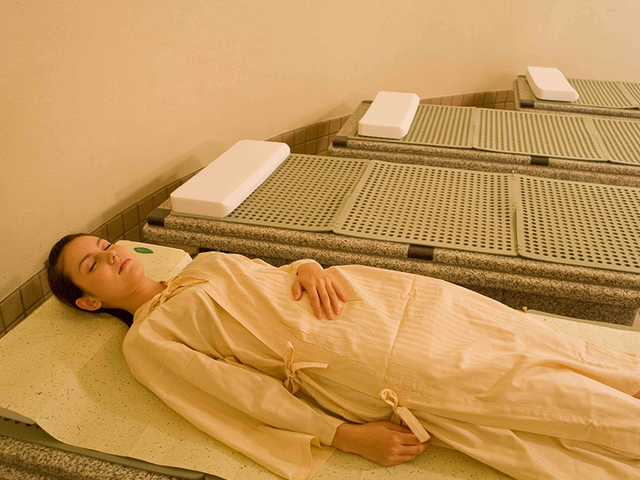 『岩草マット』を岩盤で温めることで『植物性浮遊分子』が発生し、空気となって栄養分が鼻から吸収されます。また、薬草やハーブの香りに身体が包まれ、癒しのひと時を提供します。