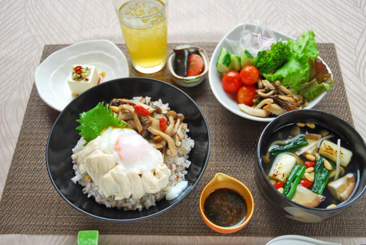 中国伝統医学(中医学)の理論に基づき、食材の持つ薬効成分を生かして心身のバランスを整え、健康維持や病気の予防を目的とした料理法です。「医食同源」の考え方に基づき、日々の食事が健康を保ち、病気を予防するという思想です。中医学の理論である「陰陽五行」や「四性五味」などを取り入れ、食材の組み合わせや調理法を決めています。