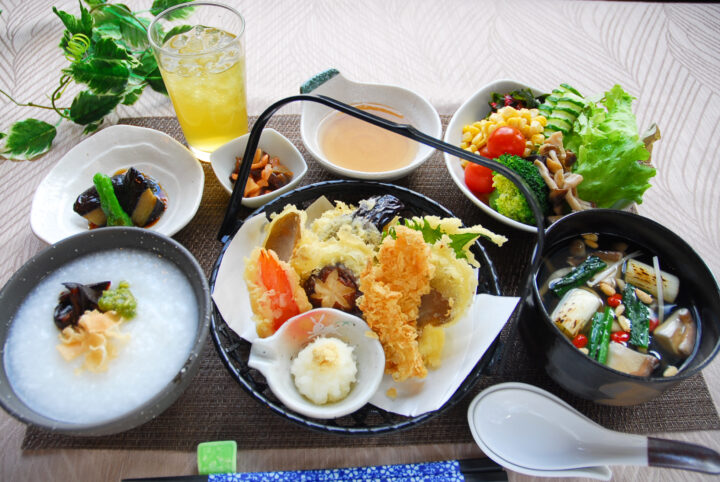 薬膳スープときのこ天麩羅・きのこ粥セット