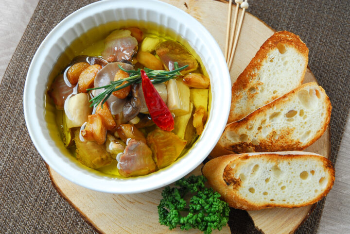 農園きのこと砂ずりの絶品アヒージョ