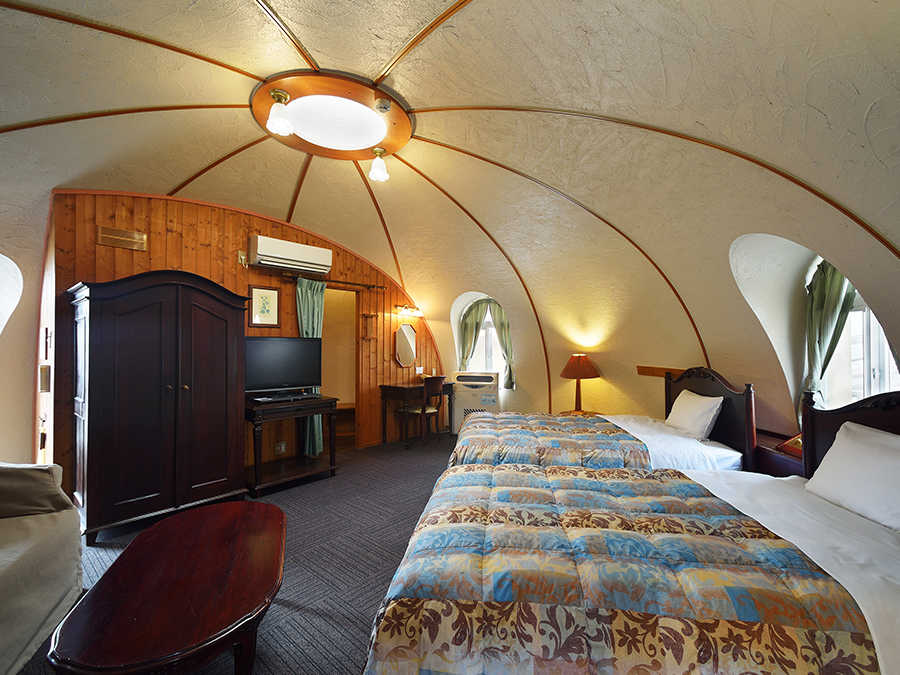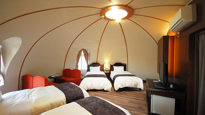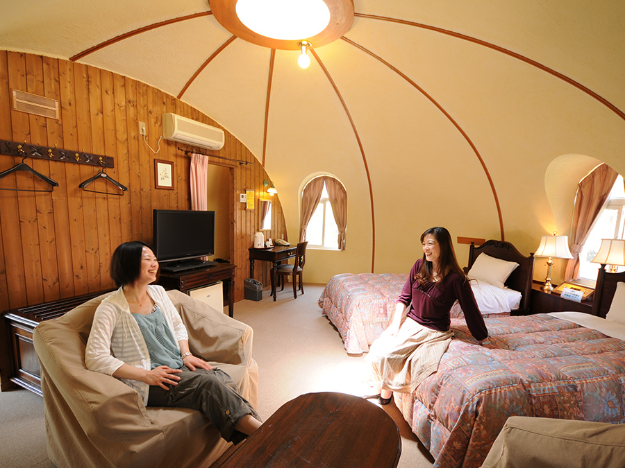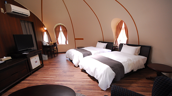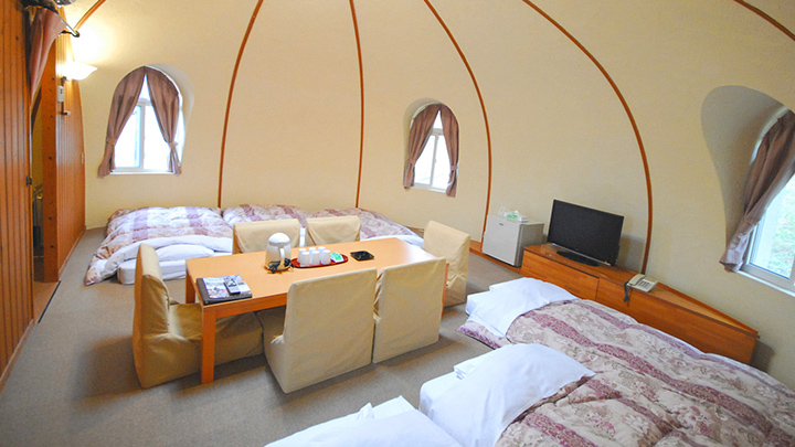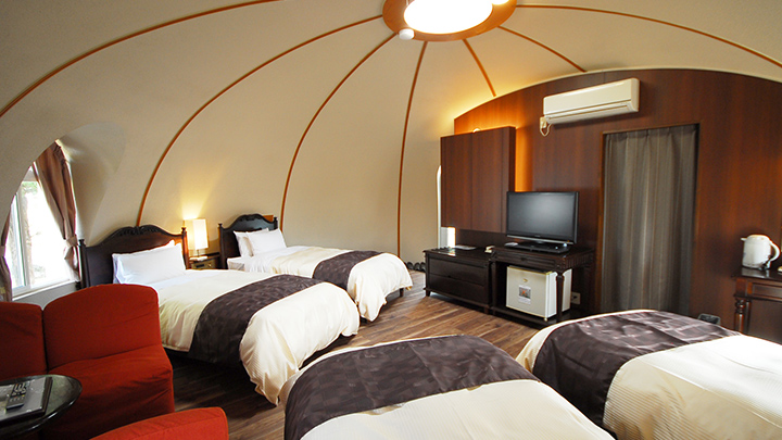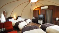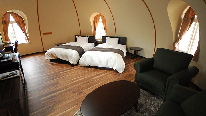 雄大な阿蘇の自然の地形をそのまま活かした森の中のドーム型ホテル